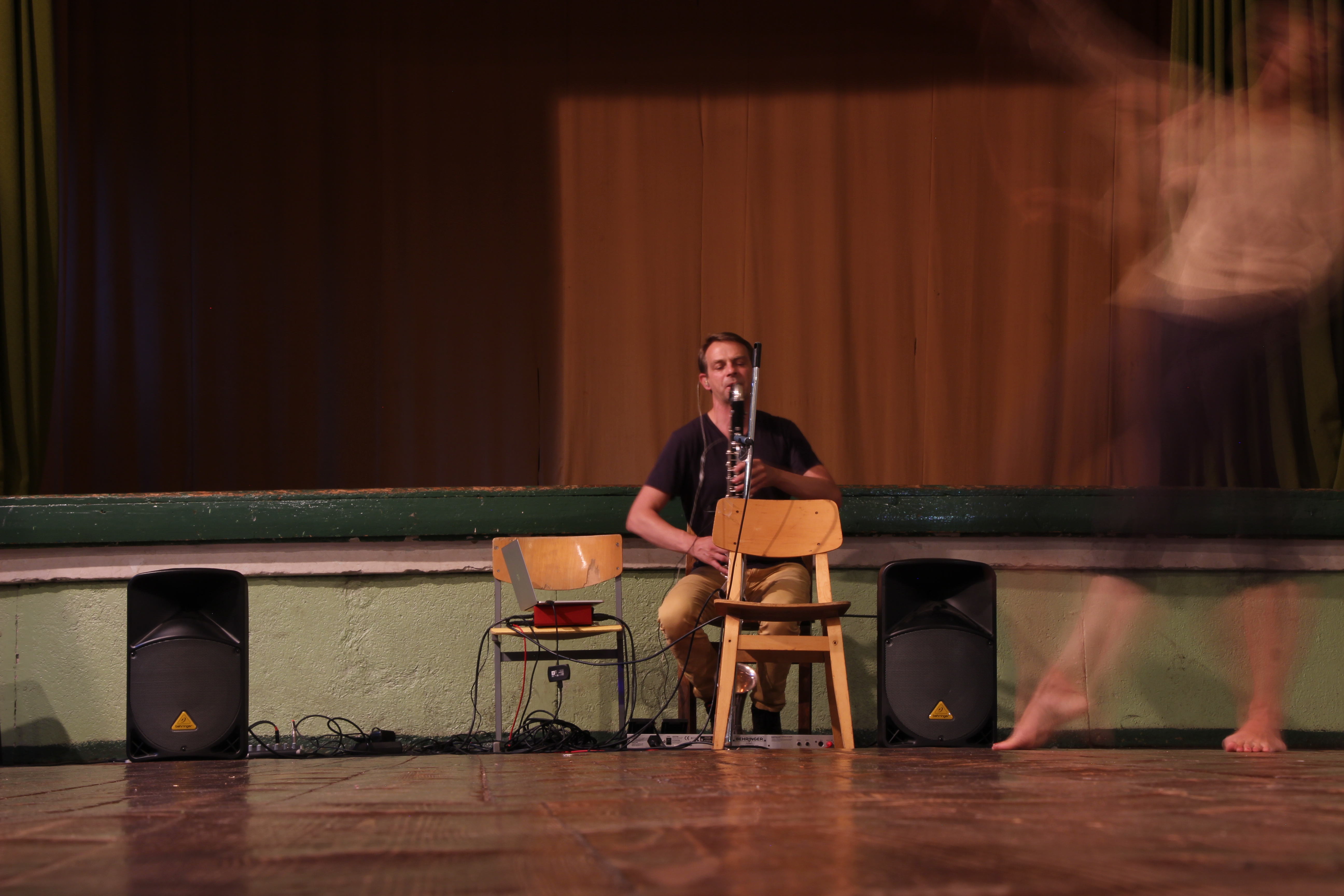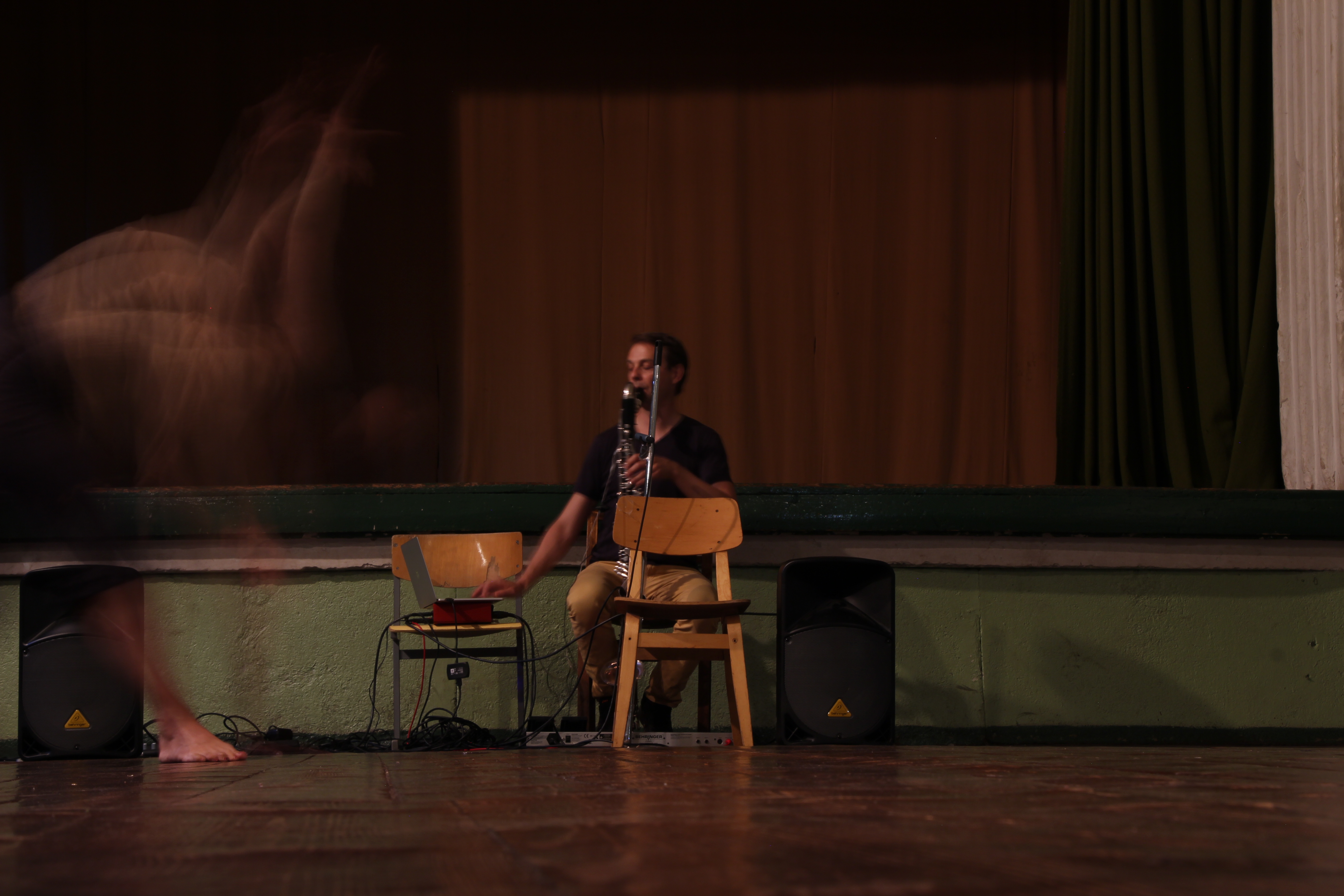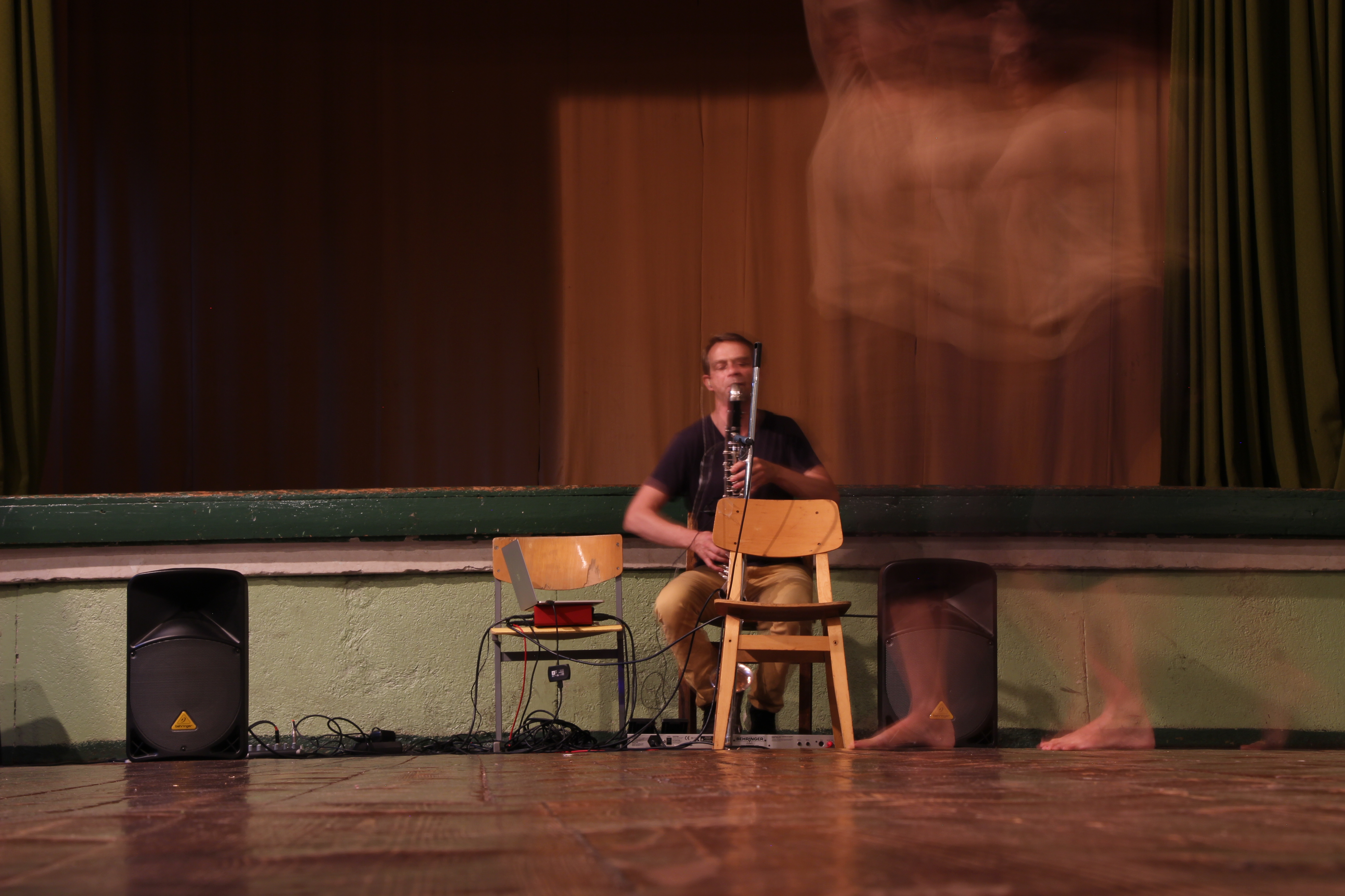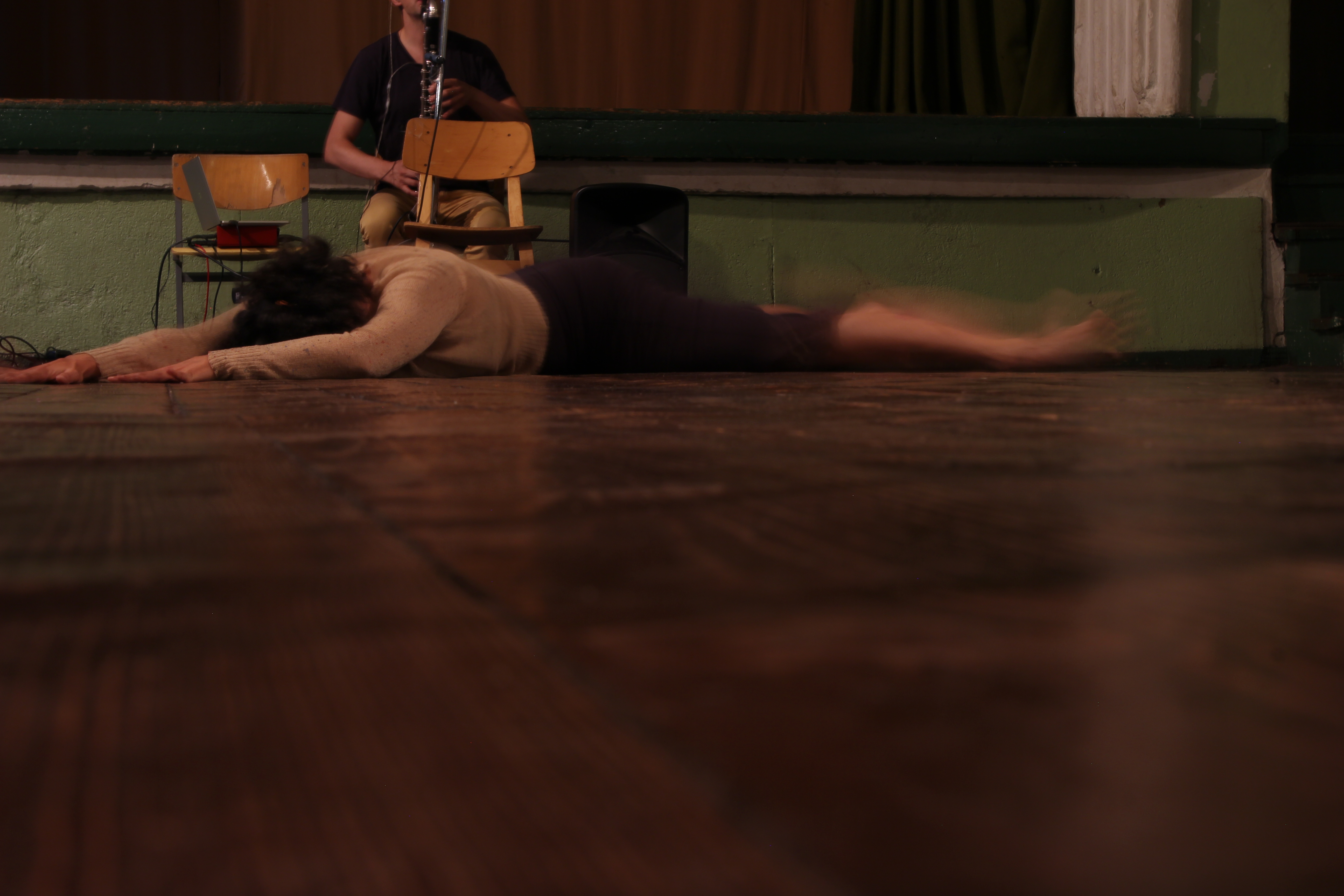 This performance is a movement study creating visibility and extention of the motion of breathing of the human body with attention to nuance and detail. It’s the first collaboration with the composer and musician Ingólfur Vilhjálmsson, who plays the new music creation for bass clarinet with electronics.